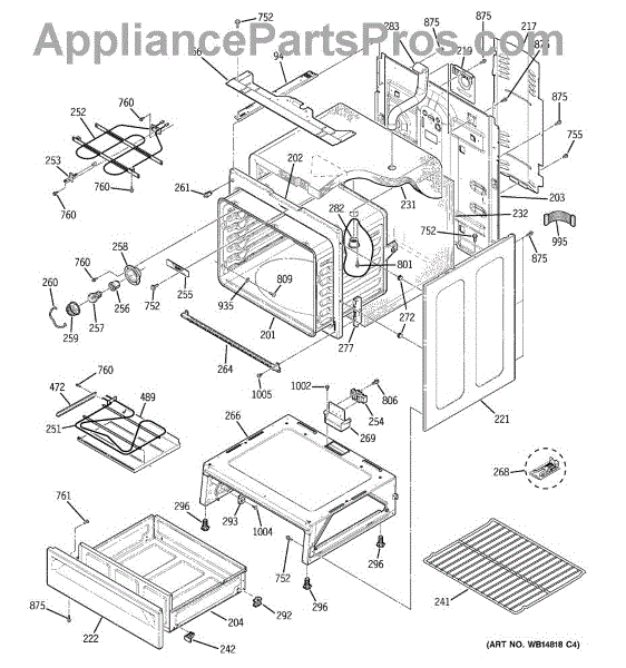 The Rear Door Support is an OEM replacement part for GE ranges. Located at the base of the range, this bracket provides weight-bearing support for the lower oven drawer. It facilitates smooth extension and retraction of the drawer. Causes of faulty support can include cracks or fractures developing over extended use, worn joints unable to sustain drawer weight, or misalignment from repeated opening/closing stress. Symptoms of a bad support include: