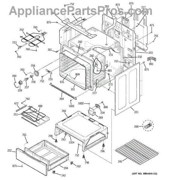The Rear Door Support is an OEM replacement part for GE ranges. Located at the base of the range, this bracket provides weight-bearing support for the lower oven drawer. It facilitates smooth extension and retraction of the drawer. Causes of faulty support can include cracks or fractures developing over extended use, worn joints unable to sustain drawer weight, or misalignment from repeated opening/closing stress. Symptoms of a bad support include: