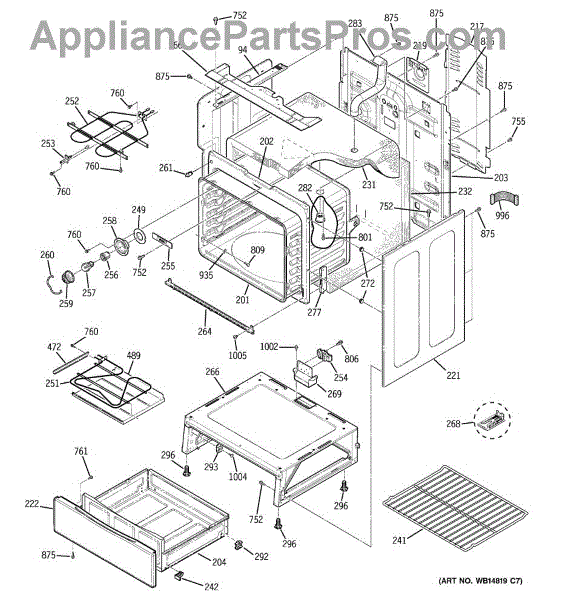 The Rear Door Support is an OEM replacement part for GE ranges. Located at the base of the range, this bracket provides weight-bearing support for the lower oven drawer. It facilitates smooth extension and retraction of the drawer. Causes of faulty support can include cracks or fractures developing over extended use, worn joints unable to sustain drawer weight, or misalignment from repeated opening/closing stress. Symptoms of a bad support include: