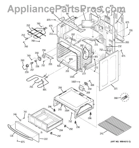 The Rear Door Support is an OEM replacement part for GE ranges. Located at the base of the range, this bracket provides weight-bearing support for the lower oven drawer. It facilitates smooth extension and retraction of the drawer. Causes of faulty support can include cracks or fractures developing over extended use, worn joints unable to sustain drawer weight, or misalignment from repeated opening/closing stress. Symptoms of a bad support include: