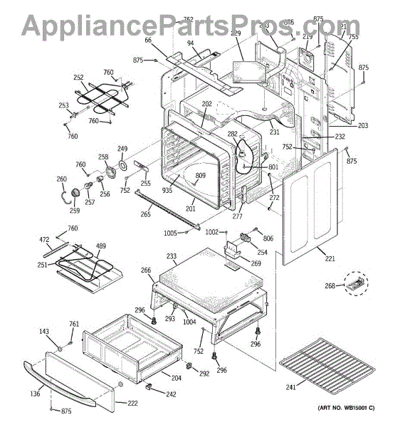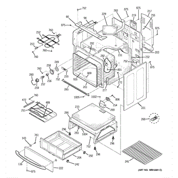 The Rear Door Support is an OEM replacement part for GE ranges. Located at the base of the range, this bracket provides weight-bearing support for the lower oven drawer. It facilitates smooth extension and retraction of the drawer. Causes of faulty support can include cracks or fractures developing over extended use, worn joints unable to sustain drawer weight, or misalignment from repeated opening/closing stress. Symptoms of a bad support include: