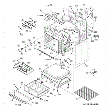 The Rear Door Support is an OEM replacement part for GE ranges. Located at the base of the range, this bracket provides weight-bearing support for the lower oven drawer. It facilitates smooth extension and retraction of the drawer. Causes of faulty support can include cracks or fractures developing over extended use, worn joints unable to sustain drawer weight, or misalignment from repeated opening/closing stress. Symptoms of a bad support include: