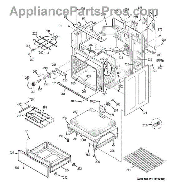 The Rear Door Support is an OEM replacement part for GE ranges. Located at the base of the range, this bracket provides weight-bearing support for the lower oven drawer. It facilitates smooth extension and retraction of the drawer. Causes of faulty support can include cracks or fractures developing over extended use, worn joints unable to sustain drawer weight, or misalignment from repeated opening/closing stress. Symptoms of a bad support include: