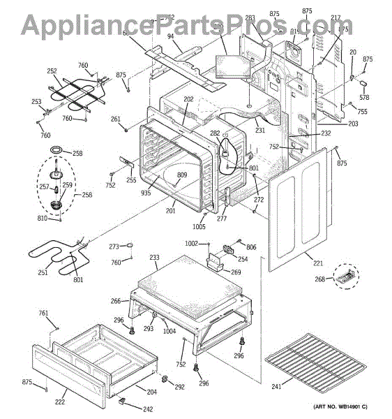 The Rear Door Support is an OEM replacement part for GE ranges. Located at the base of the range, this bracket provides weight-bearing support for the lower oven drawer. It facilitates smooth extension and retraction of the drawer. Causes of faulty support can include cracks or fractures developing over extended use, worn joints unable to sustain drawer weight, or misalignment from repeated opening/closing stress. Symptoms of a bad support include: