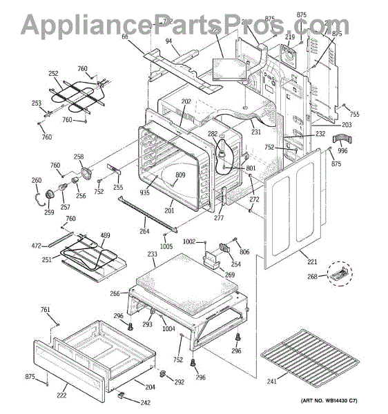 The Rear Door Support is an OEM replacement part for GE ranges. Located at the base of the range, this bracket provides weight-bearing support for the lower oven drawer. It facilitates smooth extension and retraction of the drawer. Causes of faulty support can include cracks or fractures developing over extended use, worn joints unable to sustain drawer weight, or misalignment from repeated opening/closing stress. Symptoms of a bad support include: