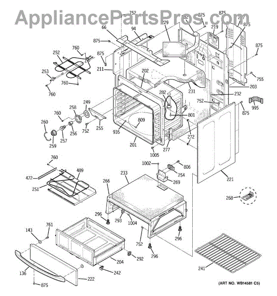 The Rear Door Support is an OEM replacement part for GE ranges. Located at the base of the range, this bracket provides weight-bearing support for the lower oven drawer. It facilitates smooth extension and retraction of the drawer. Causes of faulty support can include cracks or fractures developing over extended use, worn joints unable to sustain drawer weight, or misalignment from repeated opening/closing stress. Symptoms of a bad support include: