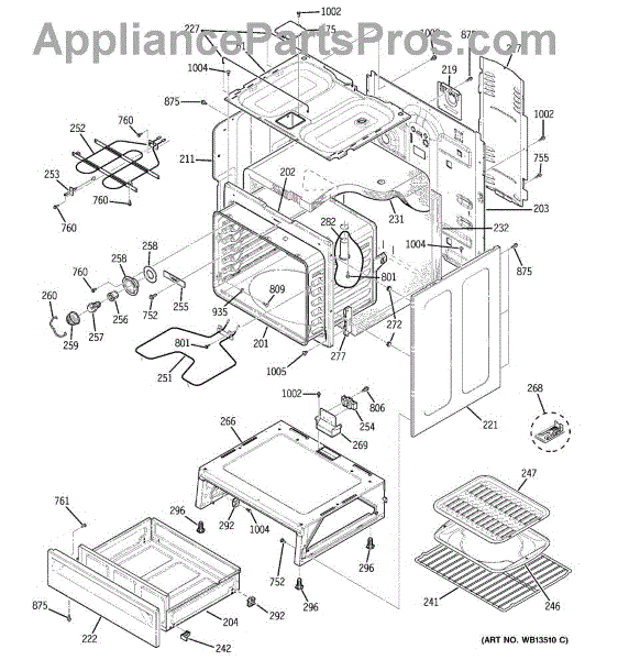 The Broiler Pan Kit is an OEM part for GE ranges. It serves as a secure platform for positioning meats, vegetables, and various foods directly beneath the broiler element, ensuring safe and efficient cooking. The pan is about 17 inches wide by 13 inches deep. Over time, wear and tear can affect broiler pans, causing issues such as flaking or stripping of the non-stick coating and the development of small ridges or holes that permit grease to drip down. Symptoms of bad broiler pans include: