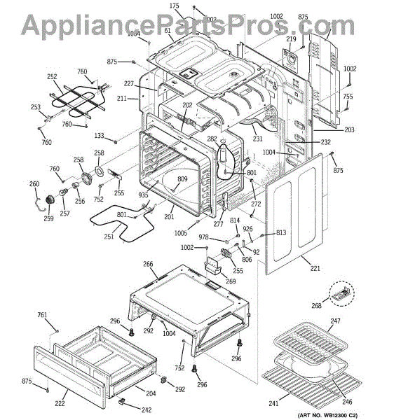 The Rear Door Support is an OEM replacement part for GE ranges. Located at the base of the range, this bracket provides weight-bearing support for the lower oven drawer. It facilitates smooth extension and retraction of the drawer. Causes of faulty support can include cracks or fractures developing over extended use, worn joints unable to sustain drawer weight, or misalignment from repeated opening/closing stress. Symptoms of a bad support include: