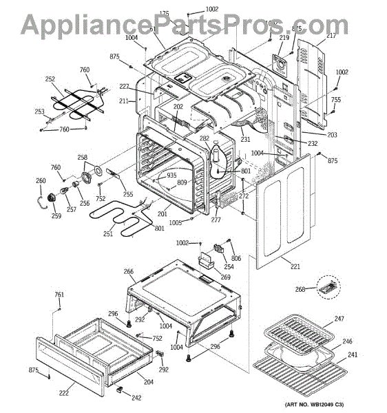 The Rear Door Support is an OEM replacement part for GE ranges. Located at the base of the range, this bracket provides weight-bearing support for the lower oven drawer. It facilitates smooth extension and retraction of the drawer. Causes of faulty support can include cracks or fractures developing over extended use, worn joints unable to sustain drawer weight, or misalignment from repeated opening/closing stress. Symptoms of a bad support include: