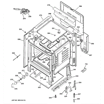 This latch assembly secures and releases the oven door as designed, including during self-clean on many models. Replacing a worn latch restores proper door engagement so cycles start reliably and the door locks when required.