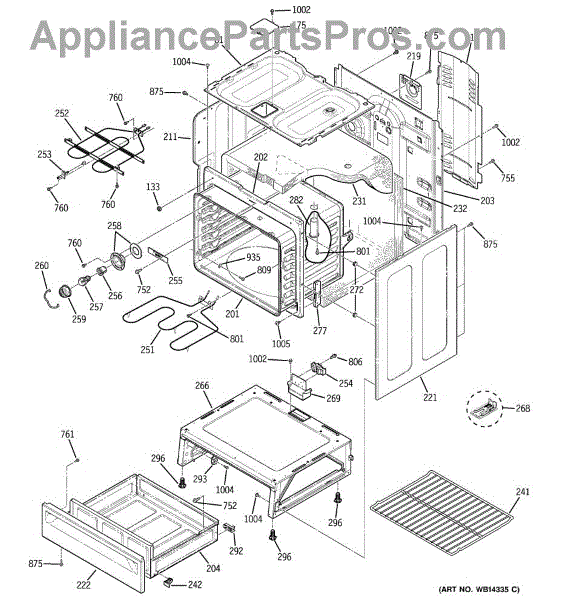 The Rear Door Support is an OEM replacement part for GE ranges. Located at the base of the range, this bracket provides weight-bearing support for the lower oven drawer. It facilitates smooth extension and retraction of the drawer. Causes of faulty support can include cracks or fractures developing over extended use, worn joints unable to sustain drawer weight, or misalignment from repeated opening/closing stress. Symptoms of a bad support include: