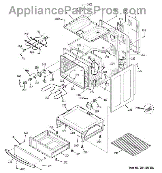 The Rear Door Support is an OEM replacement part for GE ranges. Located at the base of the range, this bracket provides weight-bearing support for the lower oven drawer. It facilitates smooth extension and retraction of the drawer. Causes of faulty support can include cracks or fractures developing over extended use, worn joints unable to sustain drawer weight, or misalignment from repeated opening/closing stress. Symptoms of a bad support include: