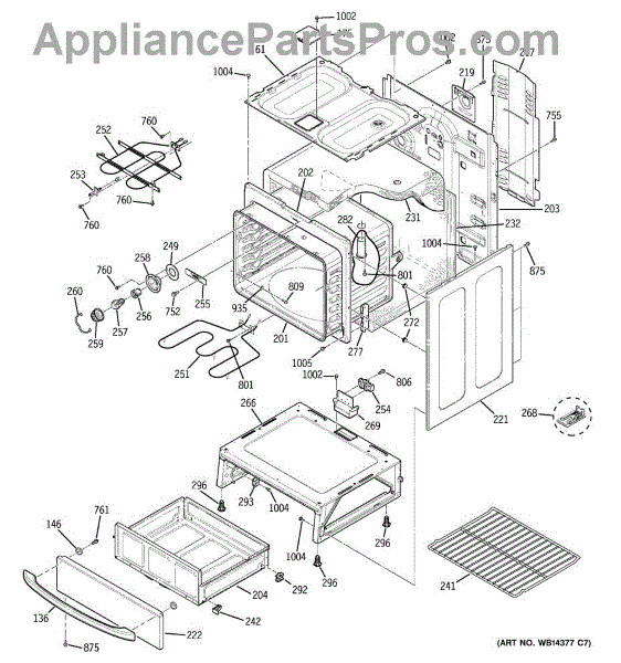 The Rear Door Support is an OEM replacement part for GE ranges. Located at the base of the range, this bracket provides weight-bearing support for the lower oven drawer. It facilitates smooth extension and retraction of the drawer. Causes of faulty support can include cracks or fractures developing over extended use, worn joints unable to sustain drawer weight, or misalignment from repeated opening/closing stress. Symptoms of a bad support include:
