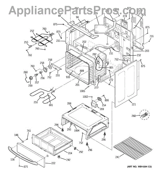The Rear Door Support is an OEM replacement part for GE ranges. Located at the base of the range, this bracket provides weight-bearing support for the lower oven drawer. It facilitates smooth extension and retraction of the drawer. Causes of faulty support can include cracks or fractures developing over extended use, worn joints unable to sustain drawer weight, or misalignment from repeated opening/closing stress. Symptoms of a bad support include: