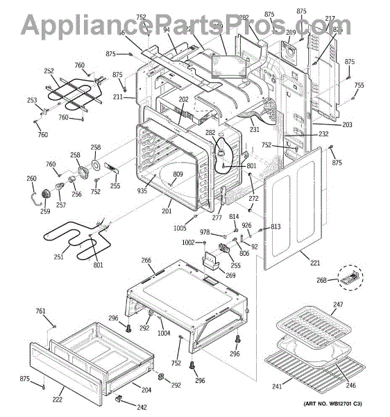 The Broiler Pan Kit is an OEM part for GE ranges. It serves as a secure platform for positioning meats, vegetables, and various foods directly beneath the broiler element, ensuring safe and efficient cooking. The pan is about 17 inches wide by 13 inches deep. Over time, wear and tear can affect broiler pans, causing issues such as flaking or stripping of the non-stick coating and the development of small ridges or holes that permit grease to drip down. Symptoms of bad broiler pans include: