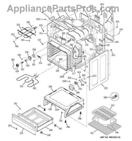 The Rear Door Support is an OEM replacement part for GE ranges. Located at the base of the range, this bracket provides weight-bearing support for the lower oven drawer. It facilitates smooth extension and retraction of the drawer. Causes of faulty support can include cracks or fractures developing over extended use, worn joints unable to sustain drawer weight, or misalignment from repeated opening/closing stress. Symptoms of a bad support include: