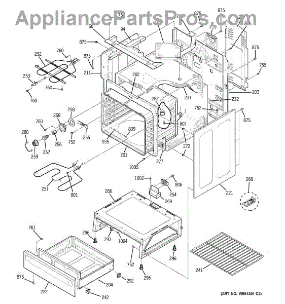 The Rear Door Support is an OEM replacement part for GE ranges. Located at the base of the range, this bracket provides weight-bearing support for the lower oven drawer. It facilitates smooth extension and retraction of the drawer. Causes of faulty support can include cracks or fractures developing over extended use, worn joints unable to sustain drawer weight, or misalignment from repeated opening/closing stress. Symptoms of a bad support include: