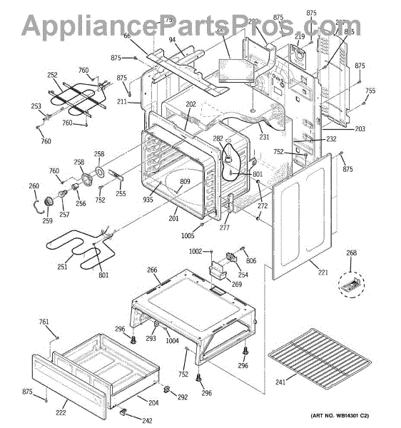 The Rear Door Support is an OEM replacement part for GE ranges. Located at the base of the range, this bracket provides weight-bearing support for the lower oven drawer. It facilitates smooth extension and retraction of the drawer. Causes of faulty support can include cracks or fractures developing over extended use, worn joints unable to sustain drawer weight, or misalignment from repeated opening/closing stress. Symptoms of a bad support include: