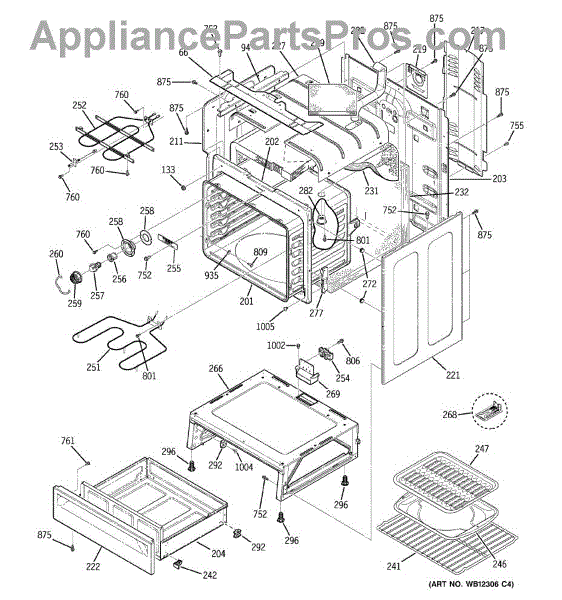 The Rear Door Support is an OEM replacement part for GE ranges. Located at the base of the range, this bracket provides weight-bearing support for the lower oven drawer. It facilitates smooth extension and retraction of the drawer. Causes of faulty support can include cracks or fractures developing over extended use, worn joints unable to sustain drawer weight, or misalignment from repeated opening/closing stress. Symptoms of a bad support include: