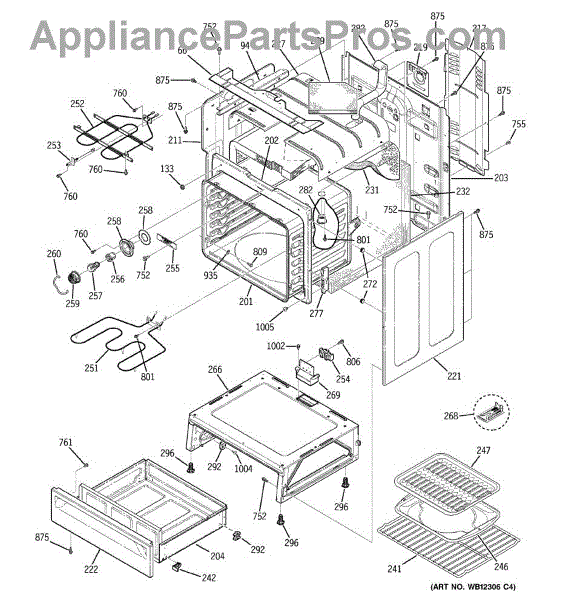The Rear Door Support is an OEM replacement part for GE ranges. Located at the base of the range, this bracket provides weight-bearing support for the lower oven drawer. It facilitates smooth extension and retraction of the drawer. Causes of faulty support can include cracks or fractures developing over extended use, worn joints unable to sustain drawer weight, or misalignment from repeated opening/closing stress. Symptoms of a bad support include: