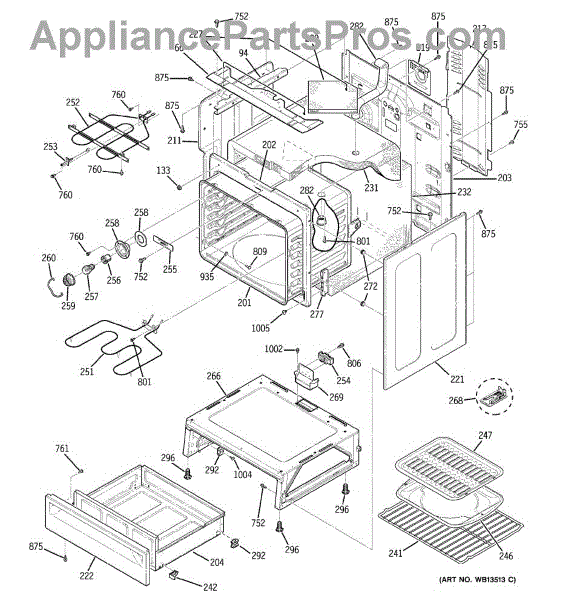 The Broiler Pan Kit is an OEM part for GE ranges. It serves as a secure platform for positioning meats, vegetables, and various foods directly beneath the broiler element, ensuring safe and efficient cooking. The pan is about 17 inches wide by 13 inches deep. Over time, wear and tear can affect broiler pans, causing issues such as flaking or stripping of the non-stick coating and the development of small ridges or holes that permit grease to drip down. Symptoms of bad broiler pans include: