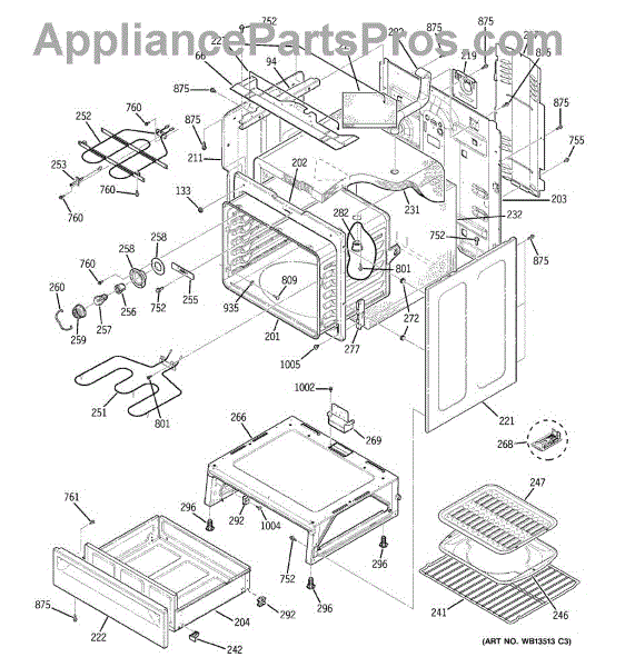 The Broiler Pan Kit is an OEM part for GE ranges. It serves as a secure platform for positioning meats, vegetables, and various foods directly beneath the broiler element, ensuring safe and efficient cooking. The pan is about 17 inches wide by 13 inches deep. Over time, wear and tear can affect broiler pans, causing issues such as flaking or stripping of the non-stick coating and the development of small ridges or holes that permit grease to drip down. Symptoms of bad broiler pans include: