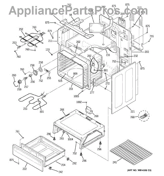 The Rear Door Support is an OEM replacement part for GE ranges. Located at the base of the range, this bracket provides weight-bearing support for the lower oven drawer. It facilitates smooth extension and retraction of the drawer. Causes of faulty support can include cracks or fractures developing over extended use, worn joints unable to sustain drawer weight, or misalignment from repeated opening/closing stress. Symptoms of a bad support include: