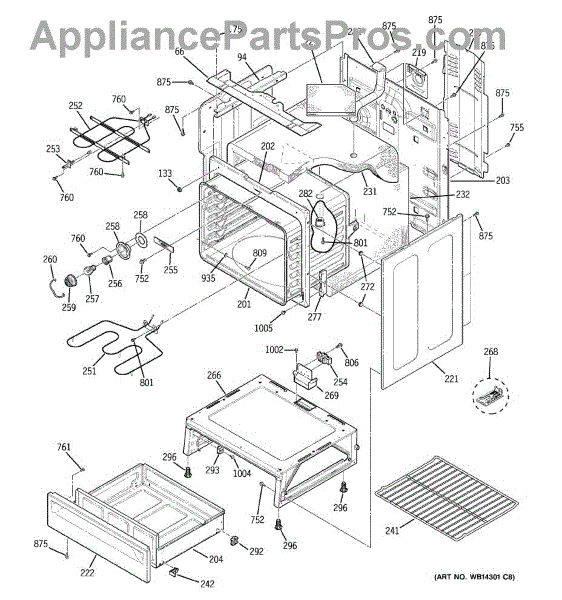 The Rear Door Support is an OEM replacement part for GE ranges. Located at the base of the range, this bracket provides weight-bearing support for the lower oven drawer. It facilitates smooth extension and retraction of the drawer. Causes of faulty support can include cracks or fractures developing over extended use, worn joints unable to sustain drawer weight, or misalignment from repeated opening/closing stress. Symptoms of a bad support include: