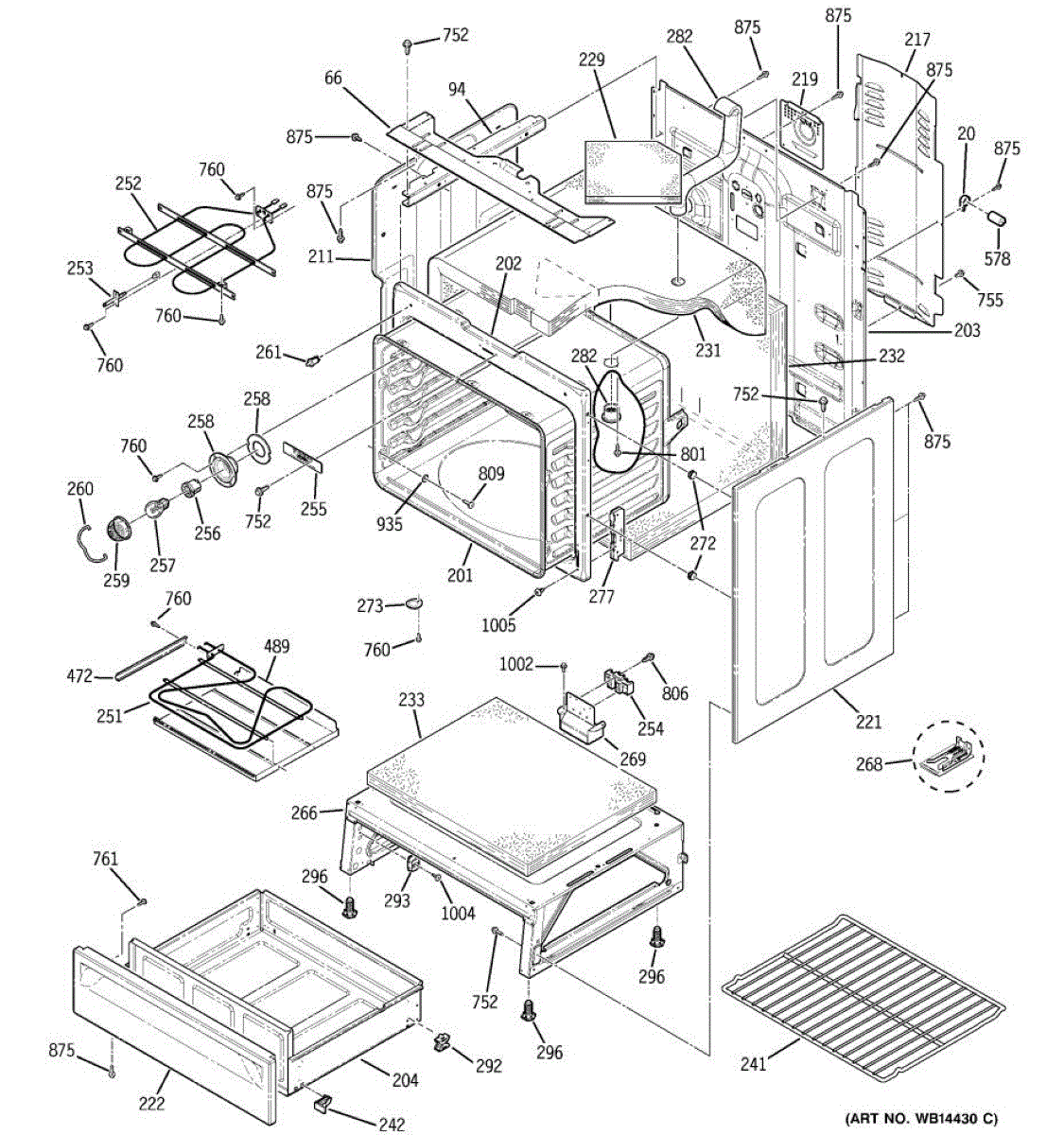 Interior oven body weld assembly for ranges. Structural frame that forms the oven cavity. Replace if cracked, rusted, warped, or damaged from wear.