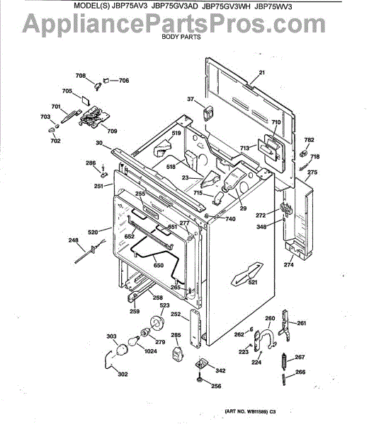 Parts for Ge JBP75GV3WH: 03 - Body Parts