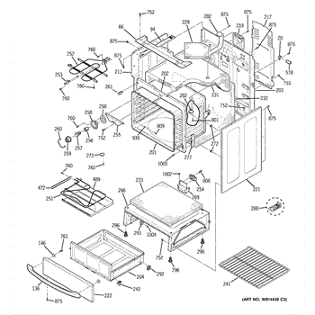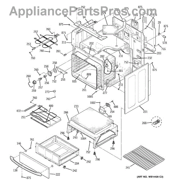 The Rear Door Support is an OEM replacement part for GE ranges. Located at the base of the range, this bracket provides weight-bearing support for the lower oven drawer. It facilitates smooth extension and retraction of the drawer. Causes of faulty support can include cracks or fractures developing over extended use, worn joints unable to sustain drawer weight, or misalignment from repeated opening/closing stress. Symptoms of a bad support include: