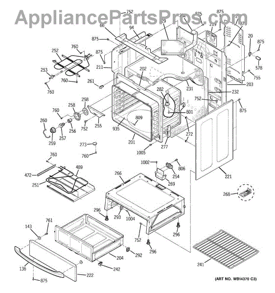 The Rear Door Support is an OEM replacement part for GE ranges. Located at the base of the range, this bracket provides weight-bearing support for the lower oven drawer. It facilitates smooth extension and retraction of the drawer. Causes of faulty support can include cracks or fractures developing over extended use, worn joints unable to sustain drawer weight, or misalignment from repeated opening/closing stress. Symptoms of a bad support include: