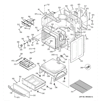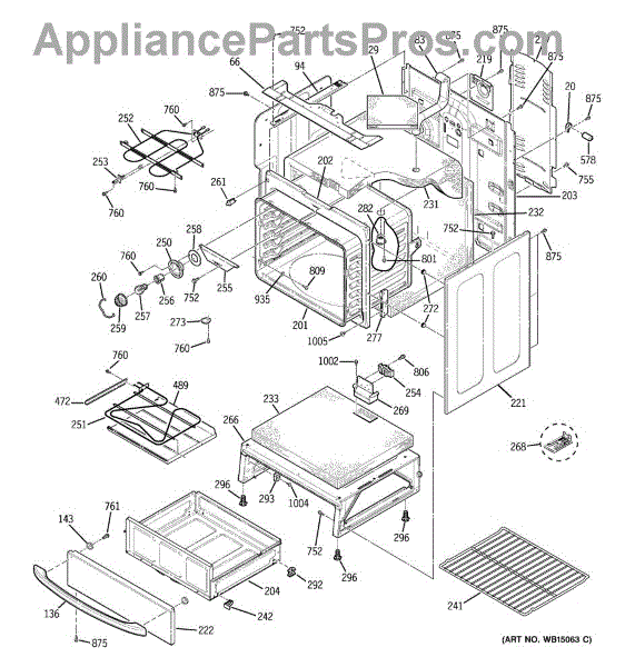 The Rear Door Support is an OEM replacement part for GE ranges. Located at the base of the range, this bracket provides weight-bearing support for the lower oven drawer. It facilitates smooth extension and retraction of the drawer. Causes of faulty support can include cracks or fractures developing over extended use, worn joints unable to sustain drawer weight, or misalignment from repeated opening/closing stress. Symptoms of a bad support include: