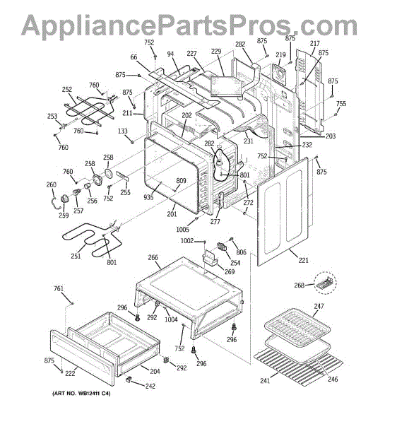 The Rear Door Support is an OEM replacement part for GE ranges. Located at the base of the range, this bracket provides weight-bearing support for the lower oven drawer. It facilitates smooth extension and retraction of the drawer. Causes of faulty support can include cracks or fractures developing over extended use, worn joints unable to sustain drawer weight, or misalignment from repeated opening/closing stress. Symptoms of a bad support include: