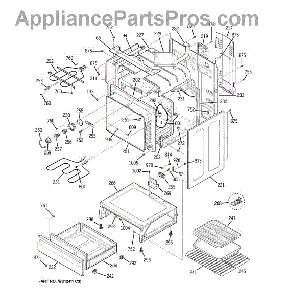 The Rear Door Support is an OEM replacement part for GE ranges. Located at the base of the range, this bracket provides weight-bearing support for the lower oven drawer. It facilitates smooth extension and retraction of the drawer. Causes of faulty support can include cracks or fractures developing over extended use, worn joints unable to sustain drawer weight, or misalignment from repeated opening/closing stress. Symptoms of a bad support include: