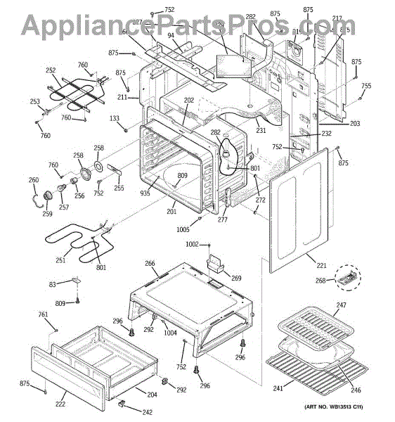 The Broiler Pan Kit is an OEM part for GE ranges. It serves as a secure platform for positioning meats, vegetables, and various foods directly beneath the broiler element, ensuring safe and efficient cooking. The pan is about 17 inches wide by 13 inches deep. Over time, wear and tear can affect broiler pans, causing issues such as flaking or stripping of the non-stick coating and the development of small ridges or holes that permit grease to drip down. Symptoms of bad broiler pans include: