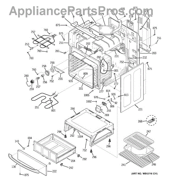 The Rear Door Support is an OEM replacement part for GE ranges. Located at the base of the range, this bracket provides weight-bearing support for the lower oven drawer. It facilitates smooth extension and retraction of the drawer. Causes of faulty support can include cracks or fractures developing over extended use, worn joints unable to sustain drawer weight, or misalignment from repeated opening/closing stress. Symptoms of a bad support include:
