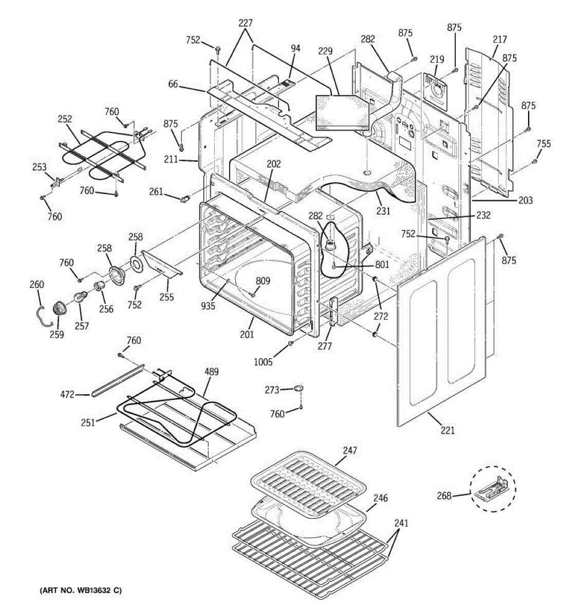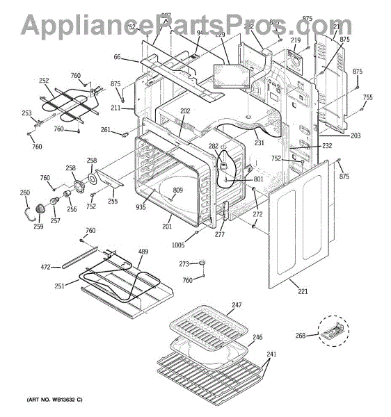 Interior oven body weld assembly for ranges. Structural frame that forms the oven cavity. Replace if cracked, rusted, warped, or damaged from wear.