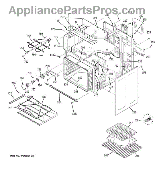 The Broiler Pan Kit is an OEM part for GE ranges. It serves as a secure platform for positioning meats, vegetables, and various foods directly beneath the broiler element, ensuring safe and efficient cooking. The pan is about 17 inches wide by 13 inches deep. Over time, wear and tear can affect broiler pans, causing issues such as flaking or stripping of the non-stick coating and the development of small ridges or holes that permit grease to drip down. Symptoms of bad broiler pans include: