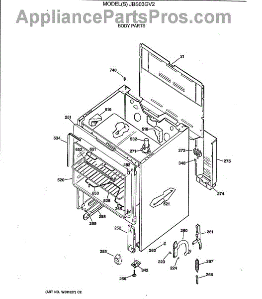 Parts for Ge JBS03GV2: 02 - Body Parts