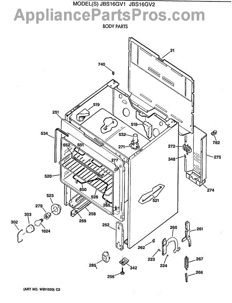 Parts for Ge JBS16GV1: 02 - Body Parts