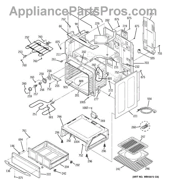 The Rear Door Support is an OEM replacement part for GE ranges. Located at the base of the range, this bracket provides weight-bearing support for the lower oven drawer. It facilitates smooth extension and retraction of the drawer. Causes of faulty support can include cracks or fractures developing over extended use, worn joints unable to sustain drawer weight, or misalignment from repeated opening/closing stress. Symptoms of a bad support include: