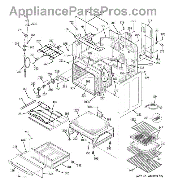 The Rear Door Support is an OEM replacement part for GE ranges. Located at the base of the range, this bracket provides weight-bearing support for the lower oven drawer. It facilitates smooth extension and retraction of the drawer. Causes of faulty support can include cracks or fractures developing over extended use, worn joints unable to sustain drawer weight, or misalignment from repeated opening/closing stress. Symptoms of a bad support include: