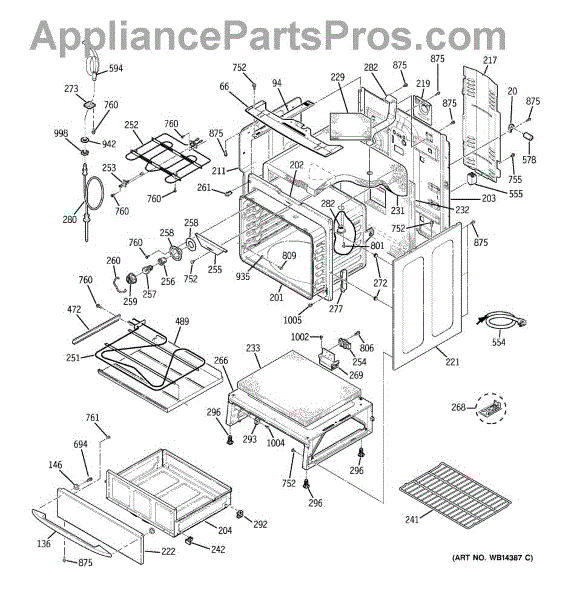 The Rear Door Support is an OEM replacement part for GE ranges. Located at the base of the range, this bracket provides weight-bearing support for the lower oven drawer. It facilitates smooth extension and retraction of the drawer. Causes of faulty support can include cracks or fractures developing over extended use, worn joints unable to sustain drawer weight, or misalignment from repeated opening/closing stress. Symptoms of a bad support include: