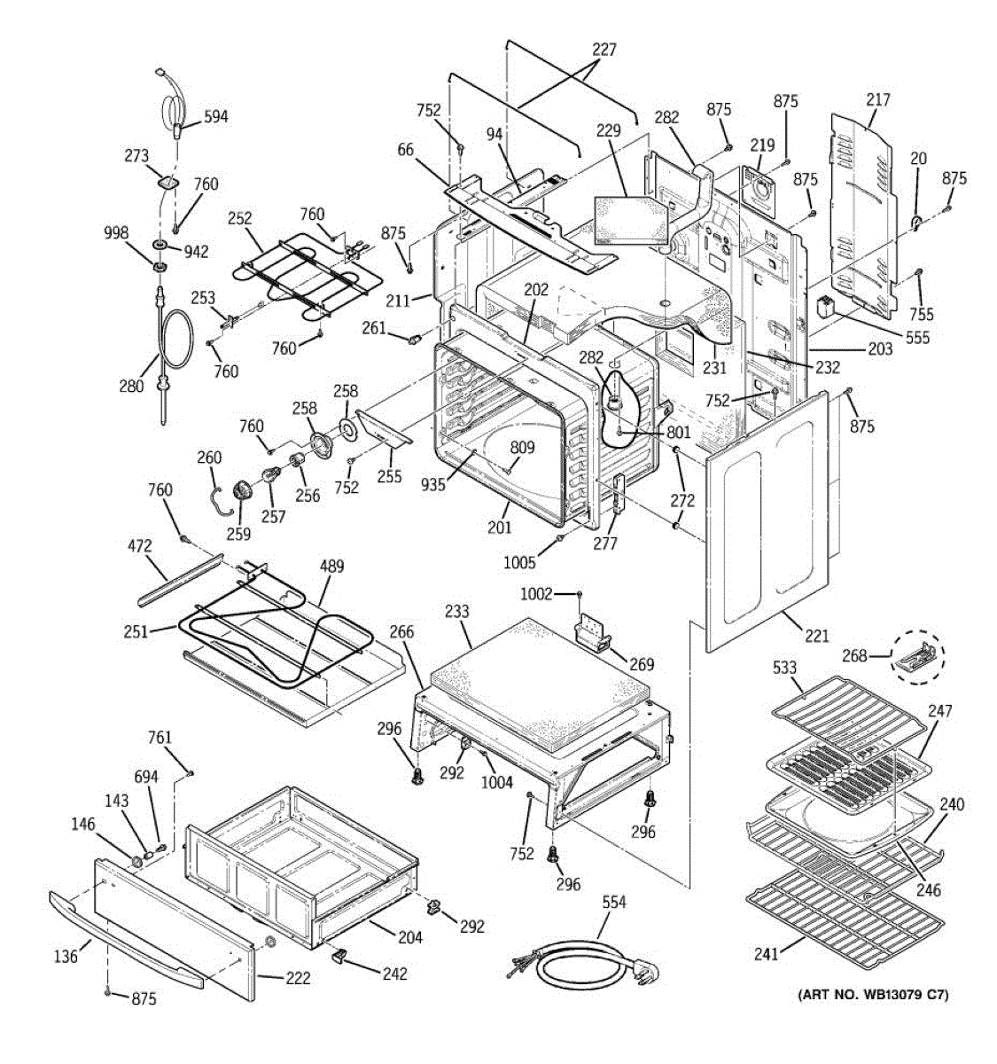 Interior oven body weld assembly for ranges. Structural frame that forms the oven cavity. Replace if cracked, rusted, warped, or damaged from wear.