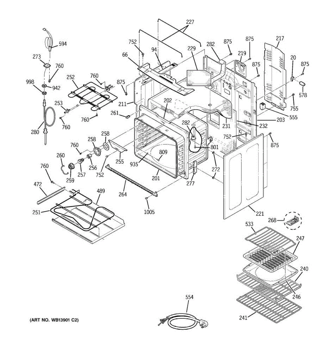 Interior oven body weld assembly for ranges. Structural frame that forms the oven cavity. Replace if cracked, rusted, warped, or damaged from wear.
