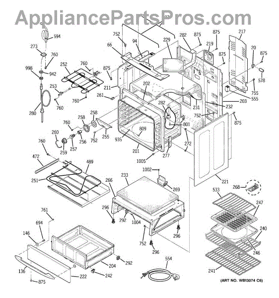 The Rear Door Support is an OEM replacement part for GE ranges. Located at the base of the range, this bracket provides weight-bearing support for the lower oven drawer. It facilitates smooth extension and retraction of the drawer. Causes of faulty support can include cracks or fractures developing over extended use, worn joints unable to sustain drawer weight, or misalignment from repeated opening/closing stress. Symptoms of a bad support include: