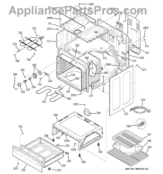 The Rear Door Support is an OEM replacement part for GE ranges. Located at the base of the range, this bracket provides weight-bearing support for the lower oven drawer. It facilitates smooth extension and retraction of the drawer. Causes of faulty support can include cracks or fractures developing over extended use, worn joints unable to sustain drawer weight, or misalignment from repeated opening/closing stress. Symptoms of a bad support include: