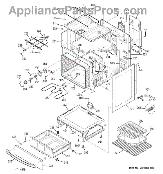 The Rear Door Support is an OEM replacement part for GE ranges. Located at the base of the range, this bracket provides weight-bearing support for the lower oven drawer. It facilitates smooth extension and retraction of the drawer. Causes of faulty support can include cracks or fractures developing over extended use, worn joints unable to sustain drawer weight, or misalignment from repeated opening/closing stress. Symptoms of a bad support include:
