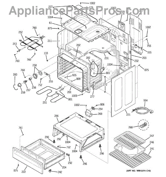 The Rear Door Support is an OEM replacement part for GE ranges. Located at the base of the range, this bracket provides weight-bearing support for the lower oven drawer. It facilitates smooth extension and retraction of the drawer. Causes of faulty support can include cracks or fractures developing over extended use, worn joints unable to sustain drawer weight, or misalignment from repeated opening/closing stress. Symptoms of a bad support include: